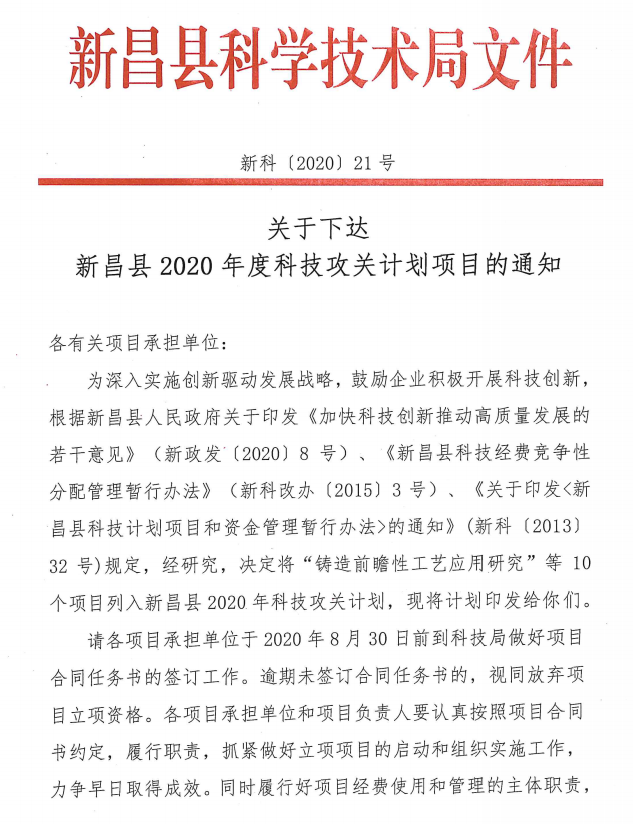 新昌量研院积极为新昌县科技局提供科技、标准咨询等服务。其中,新昌量研院与新昌县科技局合作的《县域科技创新标准体系研究》被列为新昌县2020年第二批科技计划软课题项目。